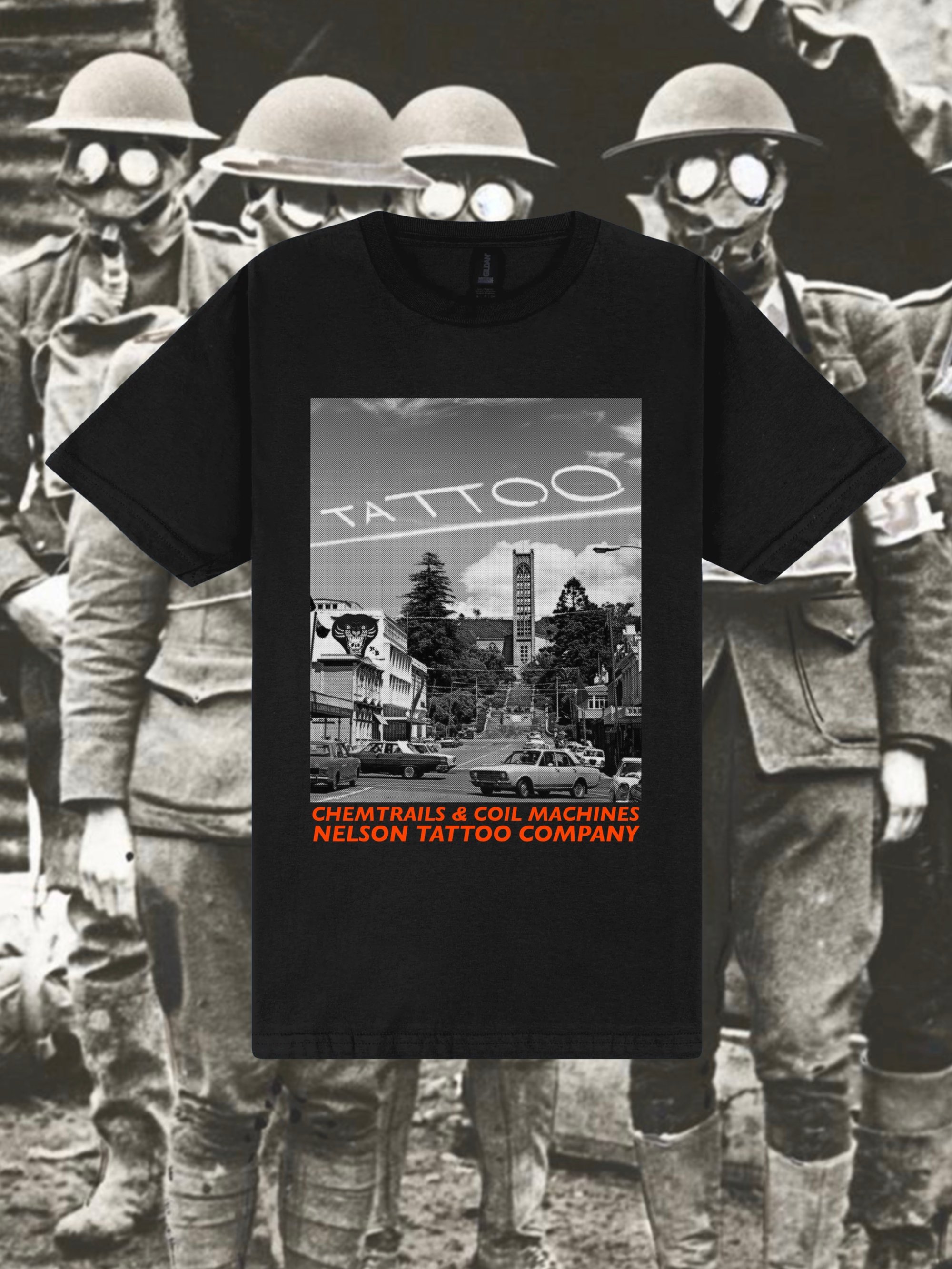 Photo of downtown Nelson and cathedral in the 1970s. Supa-colour Digital print on Gildan midweight Tee.